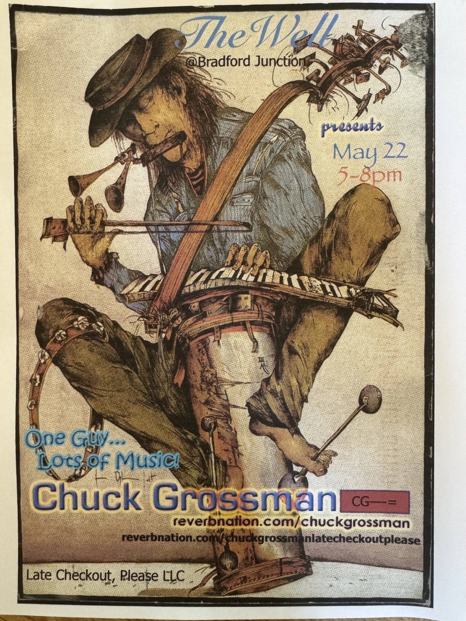 Chuck Grossman plays a variety of musical styles like fingerstyle blues, bluegrass, jazz, rock, country, folk and swing. $10 minimum per person on food and beverages, no cover. |