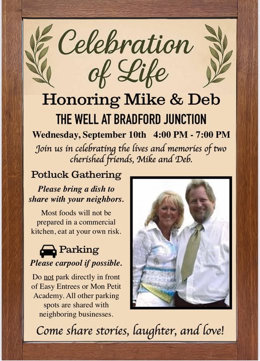 Tomorrow, we gather to celebrate the lives of Mike and Deb. Should our parking facilities reach maximum capacity, Pastor Lance of Conifer Community Church, situated at 9998 S. Havekost Road in Conifer, has generously offered his church's parking lot as an alternative. If you decide to park there, please be mindful of your safety while […]